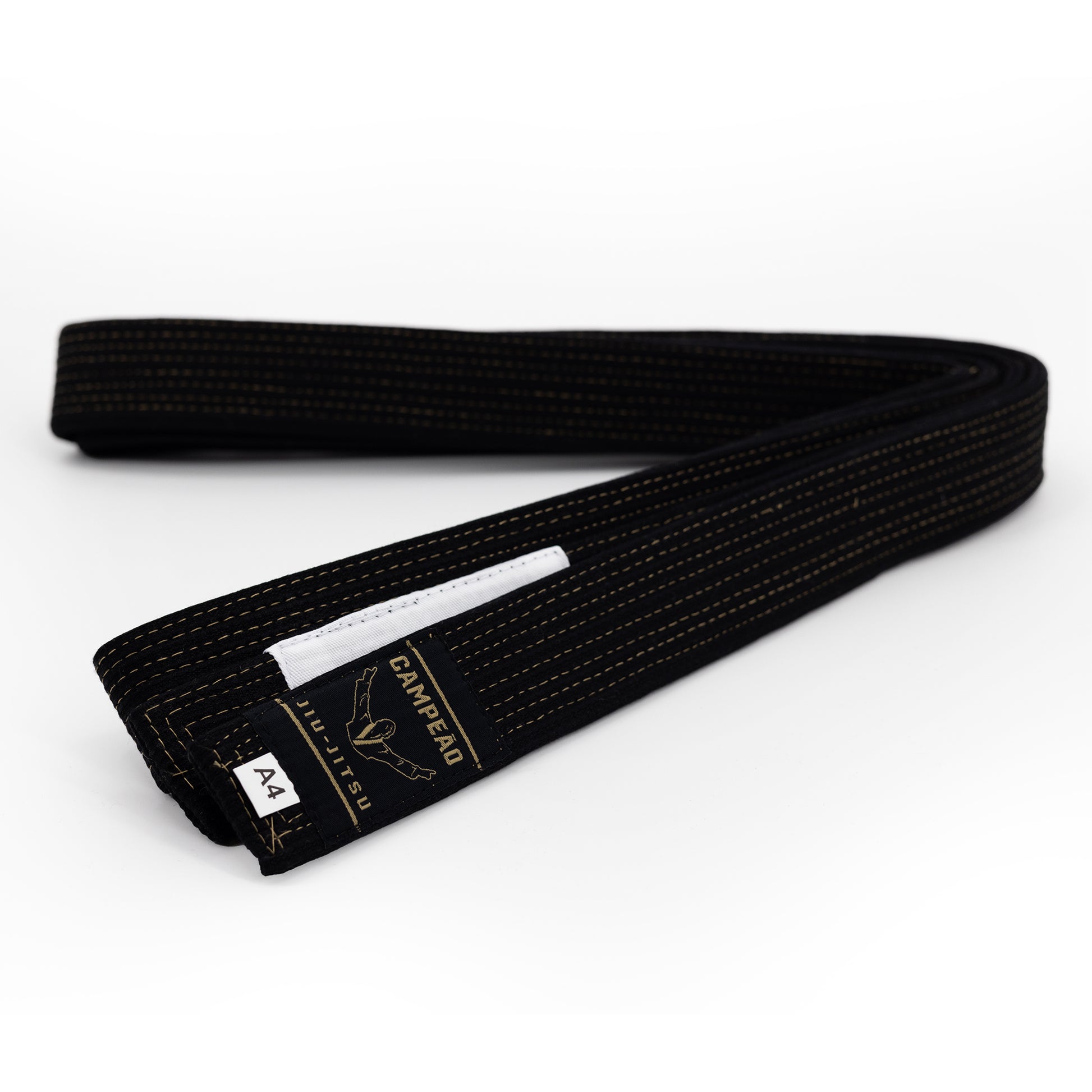 Designed for athletes who have achieved the Black Belt rank but are not yet a professor, Campeão's Premium Jiu-Jitsu Black Belt with white bar is crafted using 100% cotton pearl weave gi material. With embroidered labels, 2-inch width, and sizes from A0 to A6, you will never want to go back to wearing a regular jiu-jitsu belt.