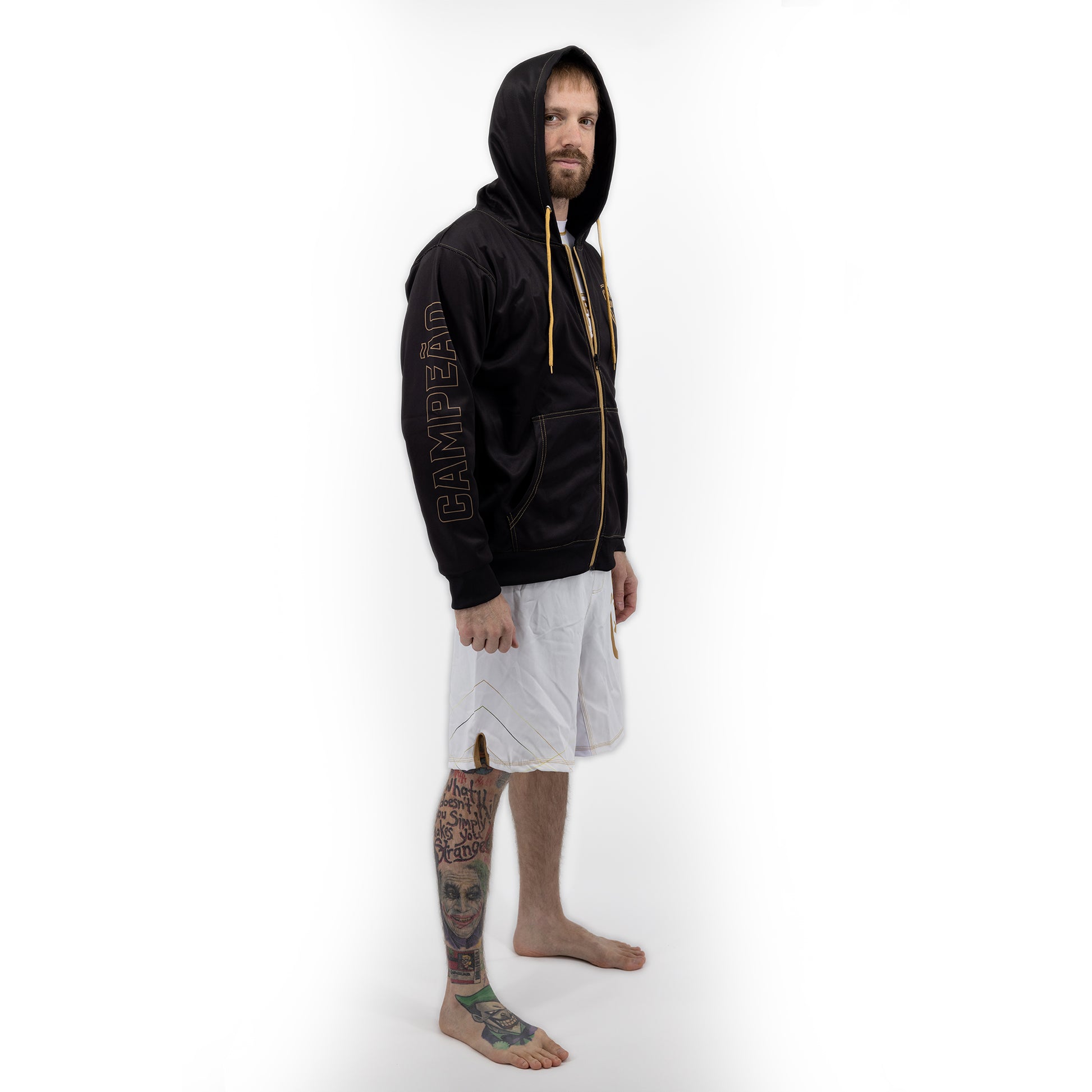 Designed to go over your gi or training gear, the Solid State zip up hoodie presents a timeless style combined with eye-catching gold accents. Constructed from an 80/20 polyester-cotton blend, this jacket also sports performance stretch and moisture-wicking technology for day-to-day wear. It has an 18oz weight and boasts fully-sublimated design elements alongside UV protection and spandex stitching.
